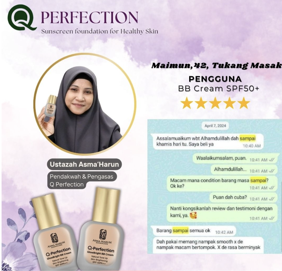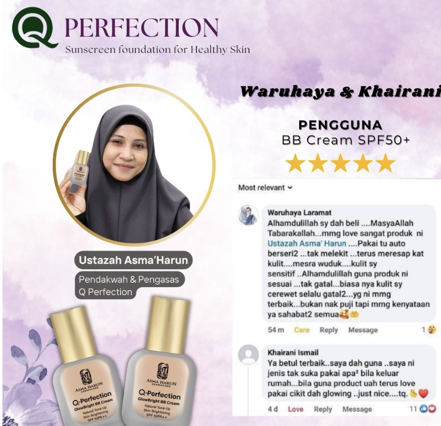 Kajian 1 Tahun Pakar Dermatologi Bersama Ustazah Asma Terbukti Pudar Jeragat Seawal 14 Hari Dengan GlowBright BB Cream Ini.