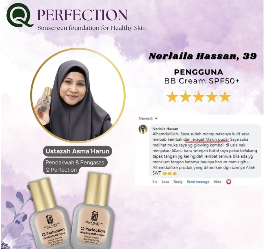 Lihat Sendiri Apa Kata Pengguna Skincare Asma Harun Kongsikan Kulit Kusam & Berjeragat… Sekarang Licin, Cerah & Glowing Hasil Selepas Menggunakan GlowBright BB Cream